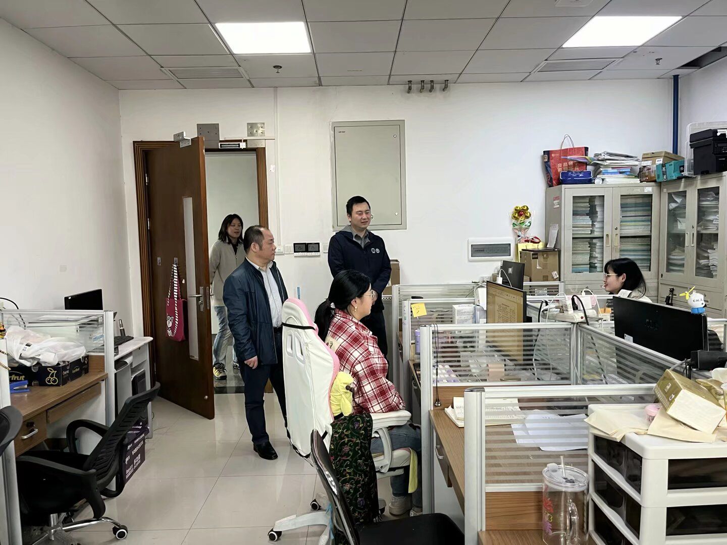全体老师走访学院研究生实验室、工作间,与同学们交流谈心,详细了解大家的学习生活近况和思想动态,听取大家对学校学院的意见建议,对同学们日常生活中遇到的困难与需求及时给予反馈。他们重点强调假期安全注意事项,针对存在的安全隐患及操作不规范等行为,逐一记录并提出整改建议及措施。他们叮嘱同学们要严格执行离校请销假报备制度,与导师、辅导员、班主任、家长勤交流、多沟通。