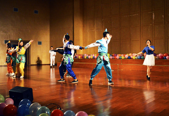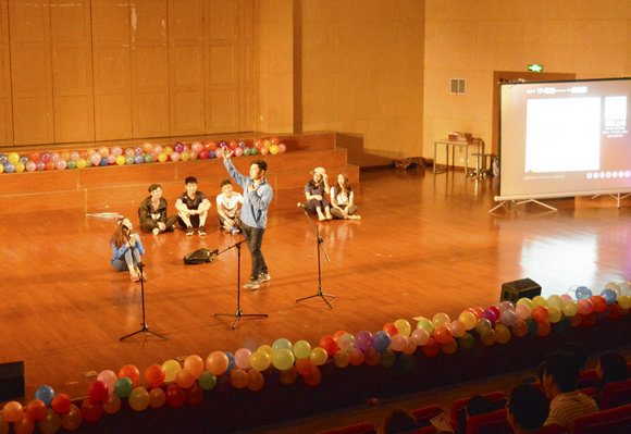 在毕委会导演组的精细筹备下,地下水科学与工程专业跳动的“尬”舞活力四射,实验班黄杨瑞的单簧管独奏给师生们送上了一场视听盛宴。从歌曲《告白气球》到舞台剧《太想爱你》,毕业生将对青春、爱情的理解,对大学生活的留恋不舍之情书写在舞台上。