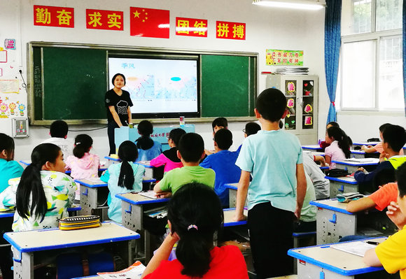 “这个谜语描述的是哪种常见的天气现象?”在地大附小501教室里,小学生们跃跃欲试举手发言,与学院的气象科普志愿者互动,学习氛围十分浓郁。