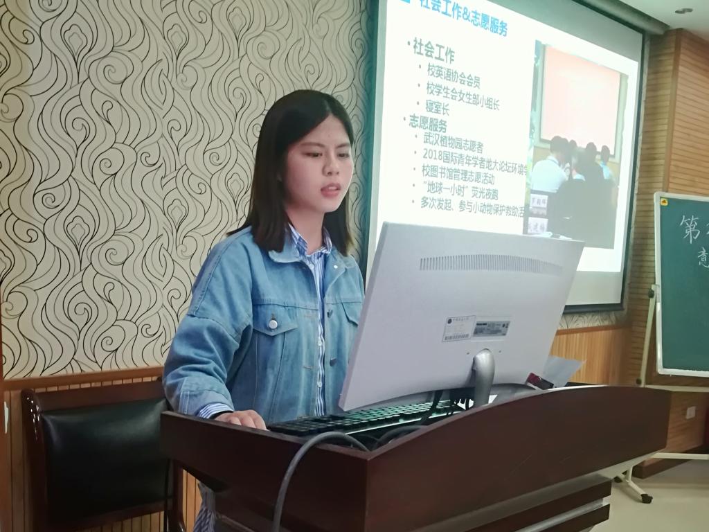 校“十大标兵学生”黄菀从“自己的简历”、“学习成绩”、“社会实践”、“英语学习相关方法”、“保研考研具体事项”等几个方面分享了自己的学习经历以及积累的学习经验。部分学生结合平时学习中的困惑都向黄菀同学提问,黄菀认真进行了回复,获得了在场同学的掌声。
