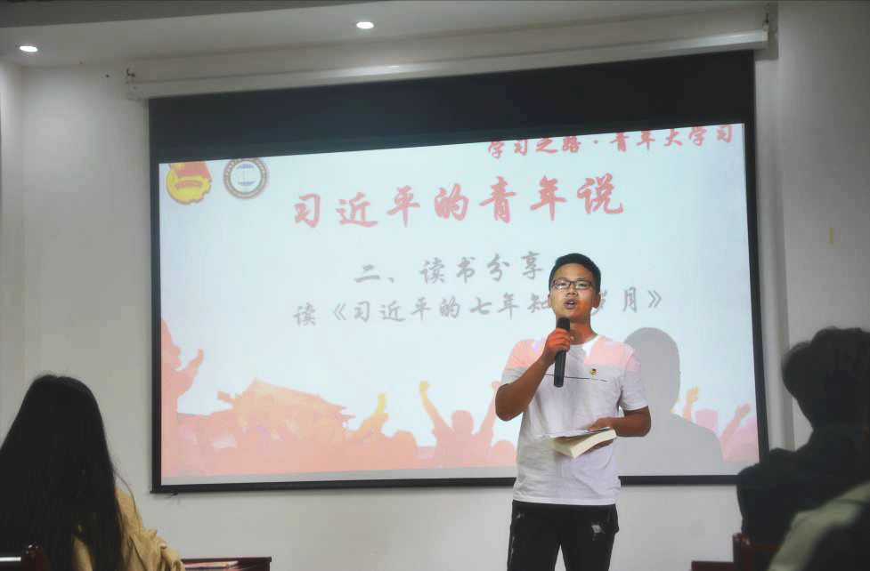 两名学生党支部书记储生明和余张诚首先分享了自己阅读《习近平的七年知青岁月》的感悟与体会。