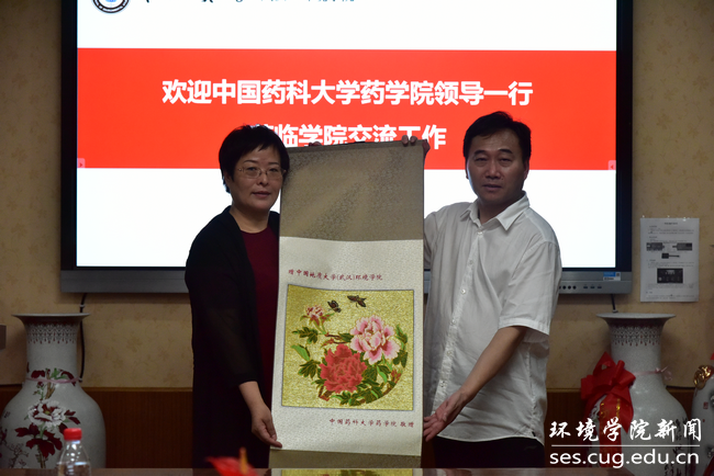 张仕英代表中国药科大学药学院向我院赠送礼物