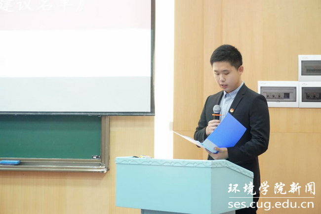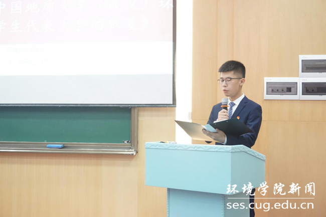 校学生会副主席陈柳源宣读《关于同意召开中国地质大学(武汉)WilliamHill中文官方第五次学生代表大会的批复》。