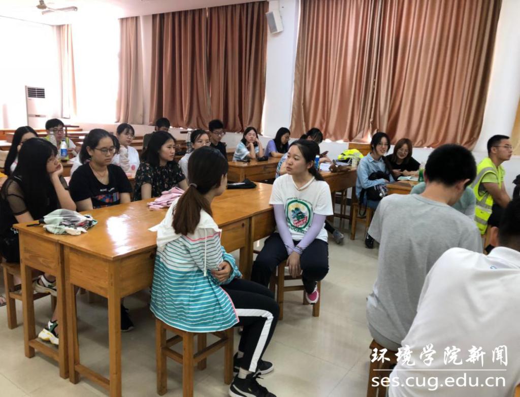 在班会上参加秭归实习的生物科学专业2016级两位同学分享了大学期间的学习经验及考研准备情况。