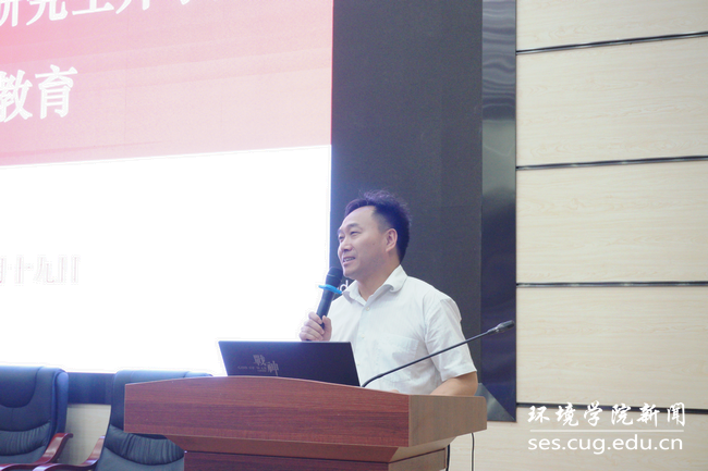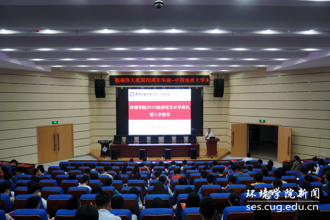 李素矿总结讲话。他代表学院向全体2019级研究生新生表示热烈的欢迎。他寄语全体新生:一是读书。用古人“万般皆下品,唯有读书高”“书中自有黄金屋,书中自有颜如玉”的优秀文化传统,树立“为中华之崛起而读书”的理想信念,多读书、读好书;二是研究。要体现研究生的身份和价值,涵养创新意识、创新精神,敢于在未知领域探索科学的真谛与奥秘;三是博爱。要有大爱情怀,在培育爱、激发爱、传播爱中,涵养爱党爱国爱家爱校爱学爱习的品格品行品味;四是恒心,要不忘初心,守住初心,持之以恒。他强调,全院正在开展“不忘初心、牢记使命”主题教育,全体研究生党员要充分发挥先锋模范带头作用,团结全体同学一道,做品德高尚、基础厚实、专业精神、知行合一的地大人,做担当民族复兴大任、红专能优的新时代生态环保铁军。