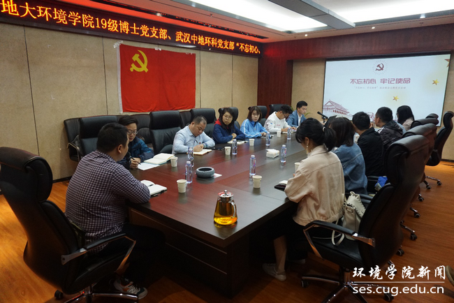 (通讯员王碧、韩鹏 摄影韩鹏 编辑 耿婧)10月25日下午,我院2019级博士党支部党员代表走进武汉中地环科集团有限公司,与中地环科水工环科技咨询有限责任公司党支部共同开展“不忘初心、牢记使命”校企联合主题党日活动。学院党委副书记姜明敏,优秀校友、武汉中地环科集团有限公司总经理金晓文参加活动。