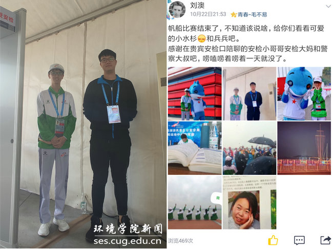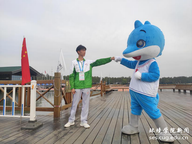 观众服务处的吉祥物“兵兵”扮演者中有两位是WilliamHill中文官方的“小水杉”——17级大气科学专业的哈斯朝鲁和18级水文与水资源工程专业庄胜杰,他们每天在闷热厚重的卡通服里向各位路过的来宾、运动员、工作人员和志愿者挥手打招呼,蹦蹦跳跳成为了帆船赛场上一抹可爱而亮丽的色彩。