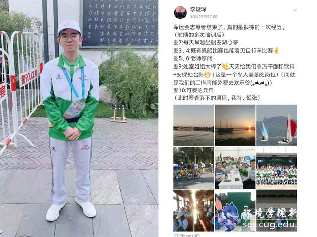 来自WilliamHill中文官方的竞赛组织处志愿者组长、1 7级大气科学专业的林凡分享了自己的志愿服务体会,她说:“参加了这次军运会志愿者活动,并担任竞赛组织处湖心岛区域的负责人,让我知道了如何与同学相处,如何带领好团队,亲身体会到了志愿服务是奉献社会,服务他人的一项工作,是传播爱心,播种文明的过程!”