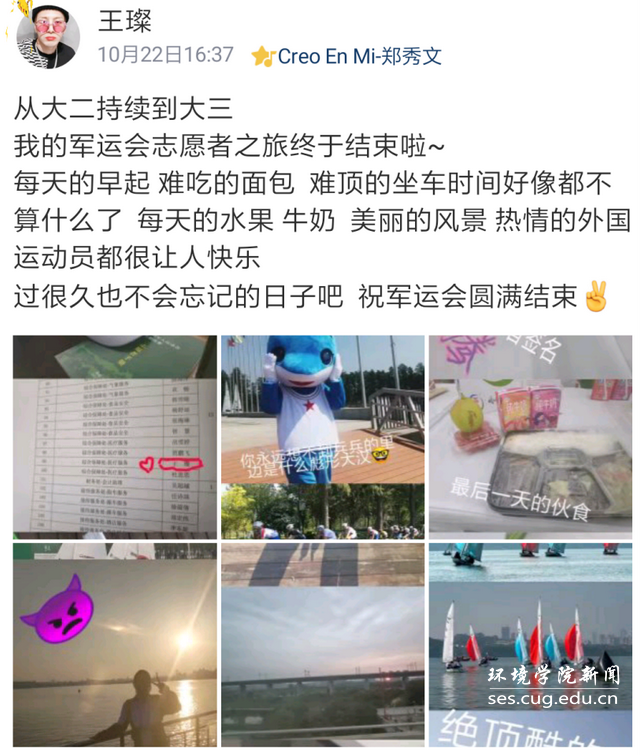 聚志愿力量,筑军运辉煌。一场场精彩比赛的背后是23万军运会志愿者“小水杉”默默的辛勤付出,这其中,46名来自我院的“小水杉”,在岗位上尽职尽责,以最美的微笑迎接八方来客,用环境人的热情踏实出色地完成每一项志愿服务工作,为军运会的成功举办贡献着青春智慧与力量。
