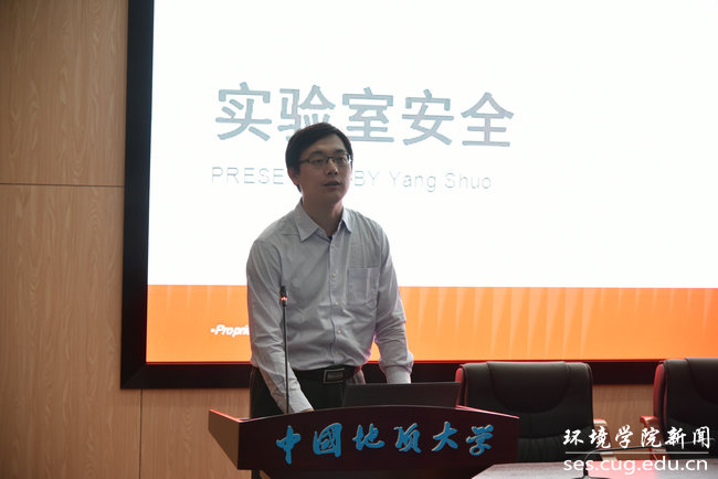 在实验室安全中,杨硕从其专业的角度,讲述了化学品处置、实验室事故处理、着装规范等方面注意事项,并用鲜活有趣的视频为大家讲述实验室安全的重要意义。