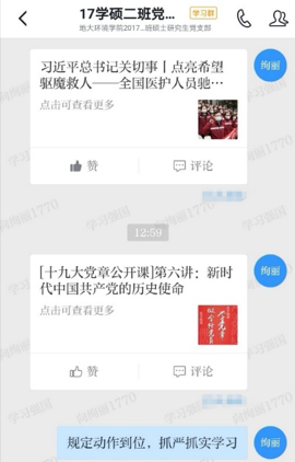 各学生党支部结合实际情况,依托学习强国APP视频会议平台、QQ工作群等方式创新开展网上主题党日活动,以“线上为主、线下为辅”的方式,完成规定动作,认真学习《关于加强党的领导、为打赢疫情防控阻击战提供坚强政治保证的通知》、习总书记关于疫情防控工作的重要指示精神、学习教育部部长陈宝生在教育系统疫情防控视频会上的讲话、学习地大致全体学生党员的一封信以及战“疫”一线的英雄事迹,向在一线抗击新型冠状病毒的英雄致敬,交流研讨学生党员面对新冠肺炎的责任与担当。各党员同志表示:作为一名共产党员应该肩负起一名党员的责任与义务,要带头做好自我隔离,落实好居家隔离的基本要求,配合防疫,做好以家庭为单位的科普工作;积极响应号召,在保证自身安全的情况下,为国家做出力所能及的贡献,开展志愿服务工作;认真学习新冠肺炎知识,保持乐观的心态迎接战“疫”曙光;除此之外还要保证在家认真学习,网上授课期间带头保质保量地完成学习任务。期待我们能够早日战胜新冠肺炎,早日回到学校,武汉加油!中国加油!