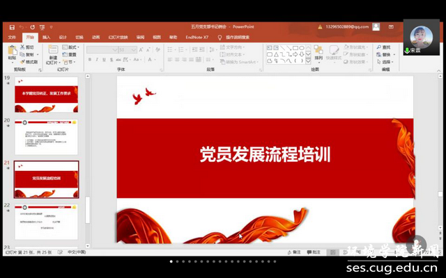 受疫情影响,本学期党员发展、转正工作未能按期推进,会议第四项,宋霖对本学期党员发展工作的注意事项以及相关安排进行了强调。随后,进行党员发展流程培训,带领支委同志再次学习党员发展规范,努力做到使每一名党员都熟悉发展流程,做到发展工作无失误。与会党支部书记和支委就有关问题开展研讨。