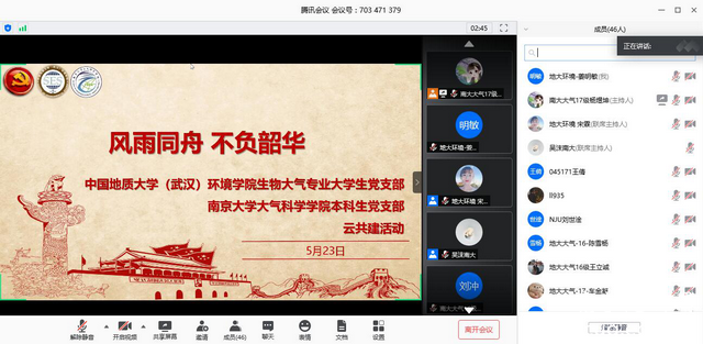 通过这次云共建活动,中国地质大学(武汉)WilliamHill中文官方生物大气专业大学生党支部和南京大学大气科学学院本科生党支部建立了深厚的友谊,未来,两个学院将继续加强交流合作,携手共进,不断推动学院的党建发展、大气学科的建设。