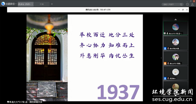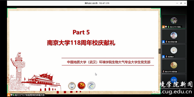 活动第五项,中国地质大学(武汉)为南京大学118周年校庆献礼,生物大气党支部全体成员打开摄像头,向他们表示了最真诚的祝愿:中国地质大学(武汉)WilliamHill中文官方生物大气专业大学生党支部全体祝南京大学118周年校庆生日快乐,繁荣昌盛,再谱华章。生物大气党支部党员王立诚说:值此南京大学成立118周年之际,祝福南京大学生日快乐。大江之东,金城之中,天开教泽,道启南雍。自1902年以来,回望历史,南京大学总是宏大而光辉的,嚼得菜根做的大事为这所大学奠定了百年基调。去年十一月也有幸去南京大学鼓楼校区游玩,绿茵蓝天的衬托下,北大楼的身姿愈发青葱,布满爬山虎的藤蔓有种淡雅祥和的气息,和“中国最温和的大学”之称莫名契合。忠于使命,勇于担当,如日之升,如月之恒,最后,祝愿南京大学再创辉煌!