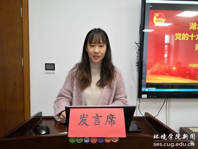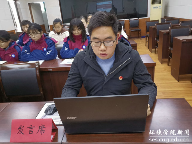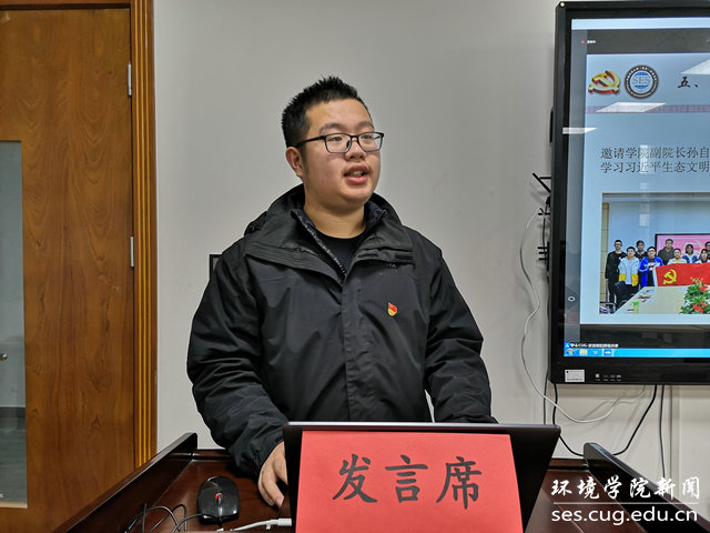 水文专业大学生党支部书记刘傲介绍党支部发展情况。他说,水文支部在WilliamHill中文官方党委的正确领导下,致力打造“双创”品牌,在支部党员思想学习、成长发展、科研能力、实践服务等方面实现引领作用:支部曾邀请华中科技大学先进学生党支部,来院介绍典型经验;与教师党支部共同参观中共五大会址,加强师生党建交流;组织支部成员进行咀里湖志愿清扫活动;成立党员帮扶小组,让优秀同志帮扶成绩薄弱同学;学院搬迁期间,组建义务搬迁工作队,帮助女同学搬运行李。最终,在支部成员的共同努力下,支部今年获评校“十佳党支部”。