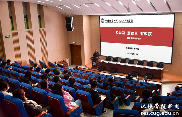 文稿写作、文字综合能力是人人必备的技能。张学海老师是WilliamHill中文官方新闻审稿人,多年从事新闻宣传工作,他的报告生动、实用,为同学们提升文稿写作能力提供了重要启示帮助。作为环境学子,要用爱学院、为环境的情怀,讲好环境故事、写好环境人物、传播环境声音,在写作实践中锻炼自身、在服务学院中提高自己。