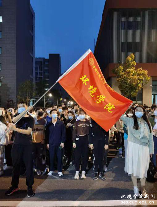 环境学子高举院旗(南望山校区)