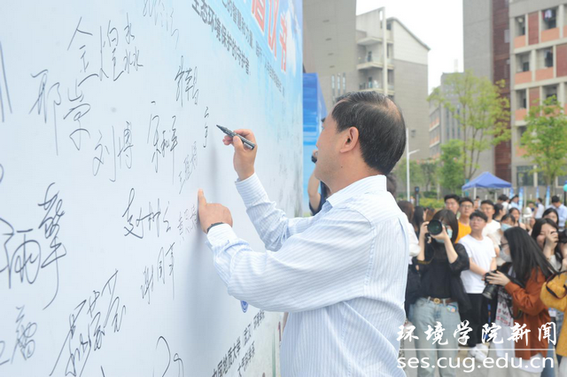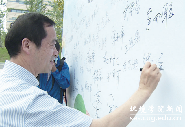校长王焰新院士在低碳生活倡议书上签名