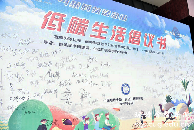 活动现场,同学们纷纷在低碳生活倡议书展板上签名,表达愿为碳达峰、碳中和贡献自己的智慧和力量。与会领导和嘉宾也在同学们发起的低碳生活倡议书上相继签名。