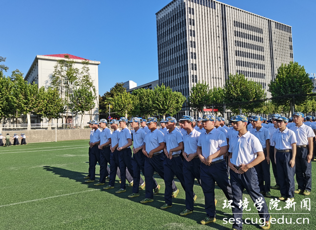 通讯员陈俊儒、黄奕飞、高天靓、耿子涵  摄影陈俊男、部分来源地大微信公众号  编辑耿婧)9月9日,海天云蒸、艳阳高照,伴着明媚阳光,整齐划一的环境学子正式与教官相见,这是少年怀揣斗志与梦想的展望,更是对军人意志与品格的传承。同学们将要面对为期15天的考验旅程,他们满怀激情,整齐嘹亮的口号饱含张国旗学长的坚毅品格,铿锵有力的步履展现的是环境学子的专心有素。英姿飒爽、不苟言笑的教官们,步调整齐、口令洪亮。随着教官们的指挥一令一动,环境学子秣马厉兵、步伐刚劲、意气风发。绿茵场上严明统一,白衣黑裤整齐列队,蓝色帽檐下的年轻面孔早已缀满汗珠,一双双紧贴裤缝的双手一动不动,咬牙将军训的苦与累咀嚼,彰显内心深处的坚毅。