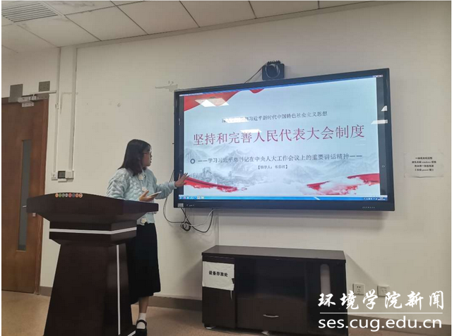学习贯彻习近平总书记在中央人大工作会议上的重要讲话精神。环境工程专业大学生党支部成员韦彩红同志带领全体支部成员一起学习了习近平总书记在中央人大工作会议上的重要讲话精神。她从多角度阐述了人民代表大会制度对党和国家、人民的重要性,她认为,在党和国家的历史新征程上,我们必须坚持和完善人民代表大会制度,它是我国的根本政治制度,是我国人民当家做主的重要制度保障。