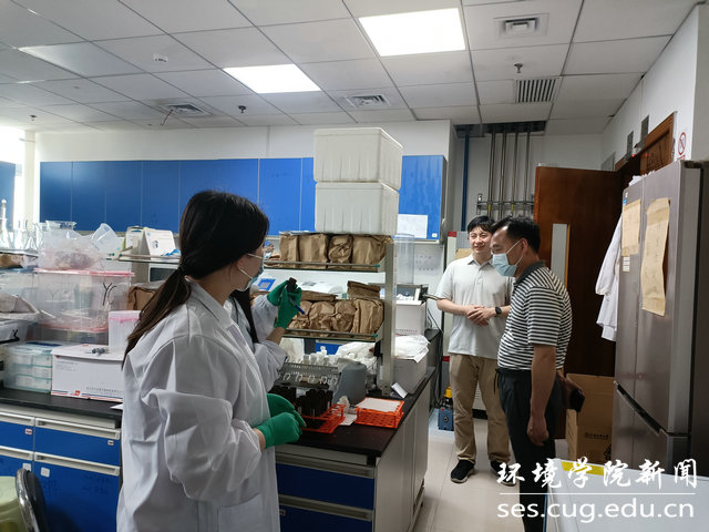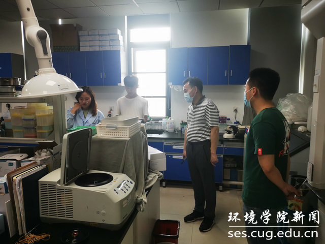 学院党委书记李素矿和辅导员赵恩民、孟庆达走访未来城校区环境楼实验室