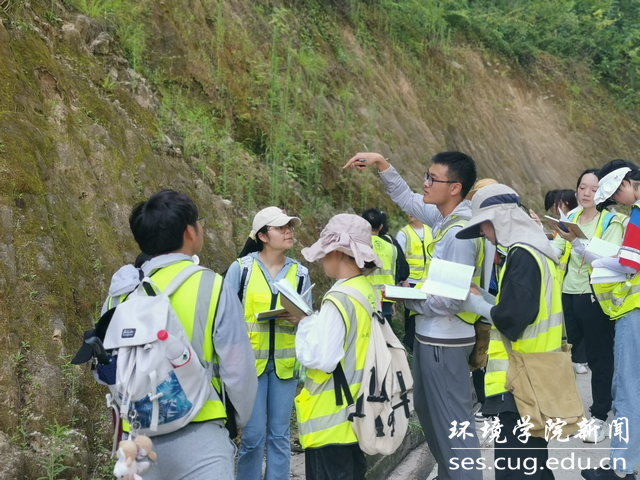 通讯稿/摄影各教学班  编辑耿婧)041191教学班: 7月8日—10日,041191教学班完成了月亮包金矿、链子崖和高家溪三条路线的野外实习,学习到了①尾矿库选址原则的要求②采矿过程可能出现的地下水污染问题③危岩体的调查内容、标准④危岩体的防治工程⑤岩溶地貌的调查、成因和水文地质意义分析等专业知识,同学们普遍提高了野外工作能力,增进了同窗友谊,锻炼了迎难而上的意志品质,培养了水文地质思维。