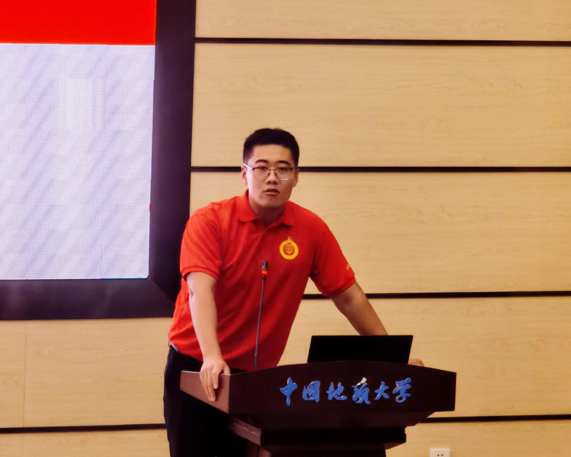 “张国旗班”党支部书记韩鹏做主题分享。他从红、专、能、优四个方面分享了他对张国旗精神的理解,并向同学们介绍了“张国旗班”的整体发展情况和“张国旗班”成员在各项学习、实践、志愿活动中展现的使命担当。
