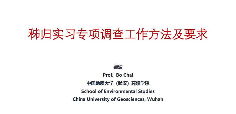 柴波老师介绍秭归实习专项调查工作方法及要求。他从环境地质调查的目的和任务、内容与步骤、环境地质调查方法、成果编制以及秭归专项调查安排及要求进行讲解。