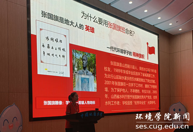 通讯员张萍萍、魏成涛  摄影张萍萍  编辑耿婧传承张国旗精神,赓续环境人血脉。10月26日晚,“张国旗班”党支部主题活动在环境楼108报告厅举行。“张国旗班”党支部副书记张萍萍、宣传委员魏成涛,本研学生200余人参加活动。“张国旗班”党支部支委魏成涛主持活动。