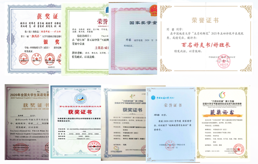 WilliamHill中文官方环境工程专业大学生党支部全体党员同志在各方面都有取得不错的成绩,在个人荣誉类上成果斐然,支部党员在互联网+大赛、节能减排大赛、节能减排大赛等专业学科赛事中获国家级奖项10余项,省部级20余项,其中,许涵同志获第八届中国国际互联网+大赛全国银奖,湖北省金奖;支部党员荣获国家级、社会类奖学金20余项,荣获院校“优秀个人”、“优秀共产党员”称号30余项。2021-2023三学年,支部成员获得国家奖学金共11人次,获得国家励志奖学金共7人次,其中2023年,国奖3人,国励2人;在2022-2023学年五四评优中,支部成员累计获得百好支书,优秀团干,优秀团员等称号9项,在中国地质大学(武汉)2023届本科先进毕业班、优秀毕业生评选中,支部成员获得优秀毕业生累计9名。支部2020级成员保研率近70%。