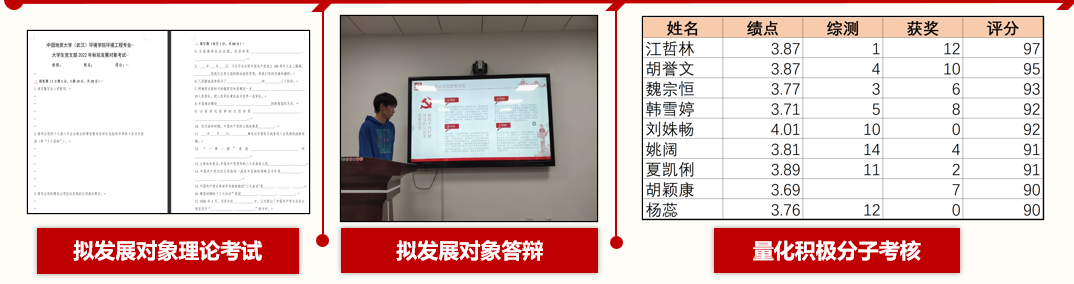 一是严格考核标准,做到管理党员有力。支部重视入党积极分子培养,从新生入党流程学习会、信息化台账建设,量化入党积极分子考核标准等全过程培养支部后备军。严把党员发展质量,发展党员需经过考试、答辩、谈话等一系列支部规定内容,层层筛选,优中选优,严格把控党员质量。