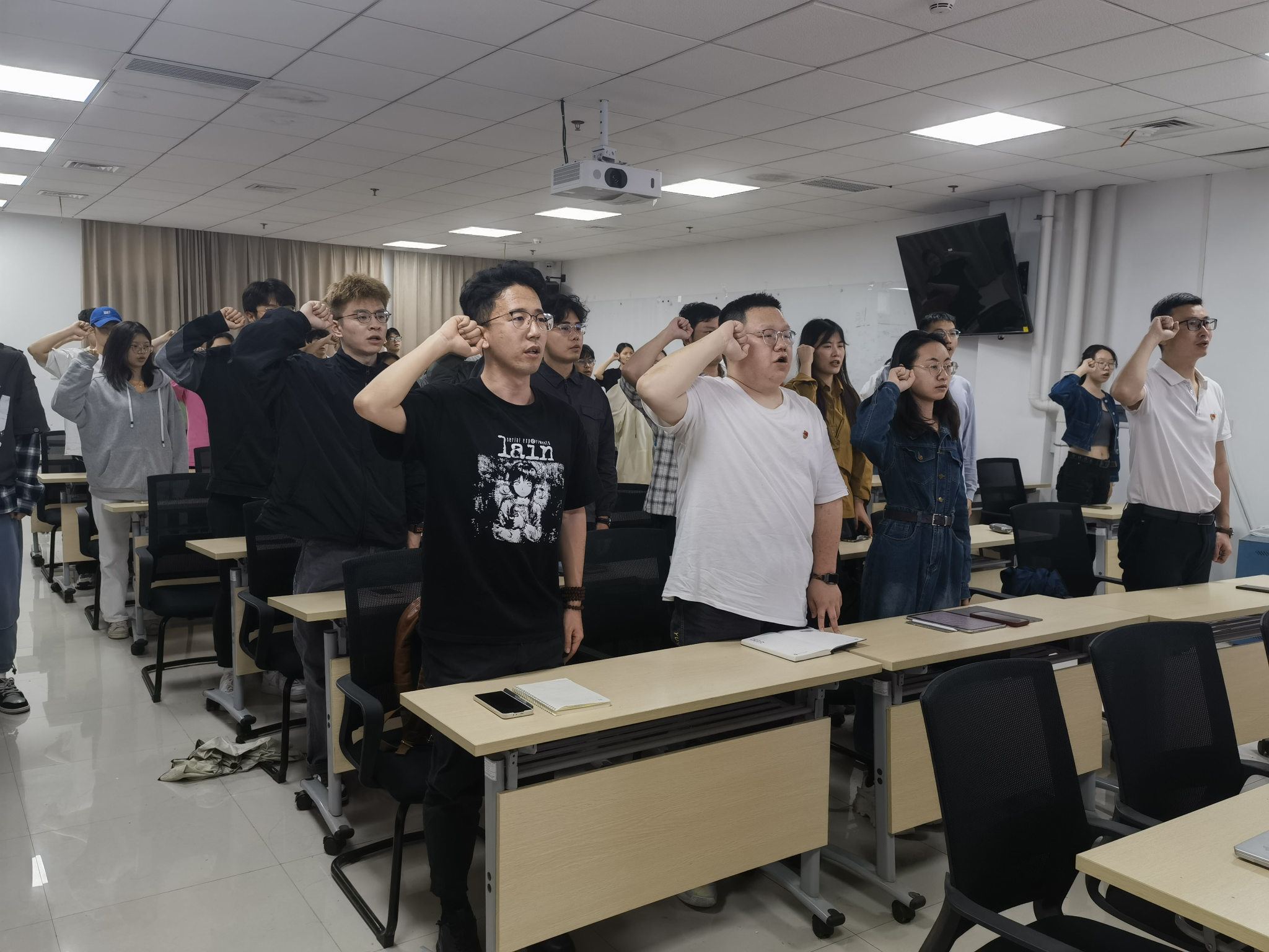 专题党课开始前,全体新发展学生党员集体入党宣誓。