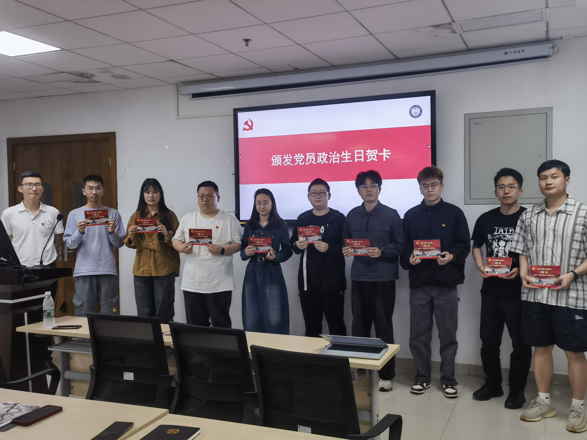 专题党课结束后,王海锋为新发展学生党员代表颁发党员政治生日贺卡。