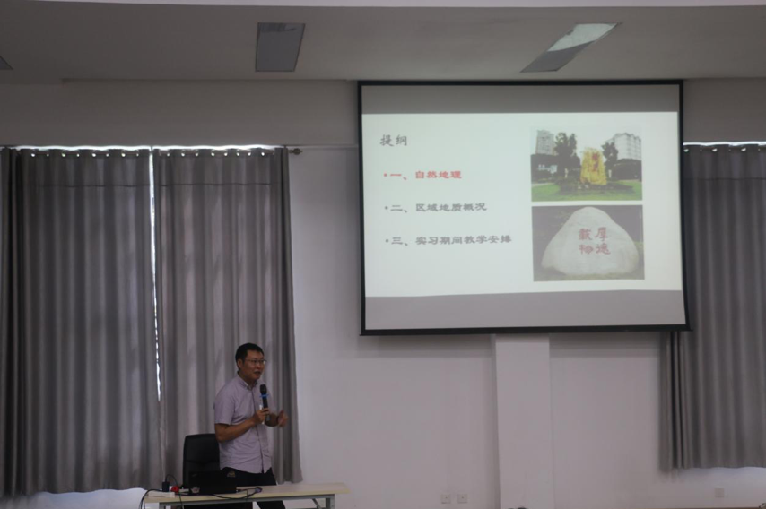 柴波老师介绍三峡秭归实习区地质概况及教学安排。他对学院今年秭归教学实习背景、教学安排和实习要求作详细介绍,并要求大家严格遵守实习基地和学院实习队管理规定,要弘扬理论联系实际优良作风,在实习中锤炼过硬本领,践行校训精神。