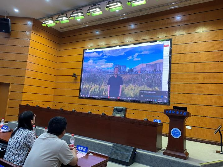 校友代表、第28届中国青年五四奖章获得者、2016届地下水科学与工程专业硕士罗锋给新生寄语。他希望学弟学妹们在未来的职业生涯中将专业基础打牢,学好专业知识;坚持以实践为基础,充分将所学的理论知识与实践相结合,对标学院人才培养目标,牢记地质报国的初心使命,将小我融入祖国发展的大我,在现代化建设中挺膺担当。