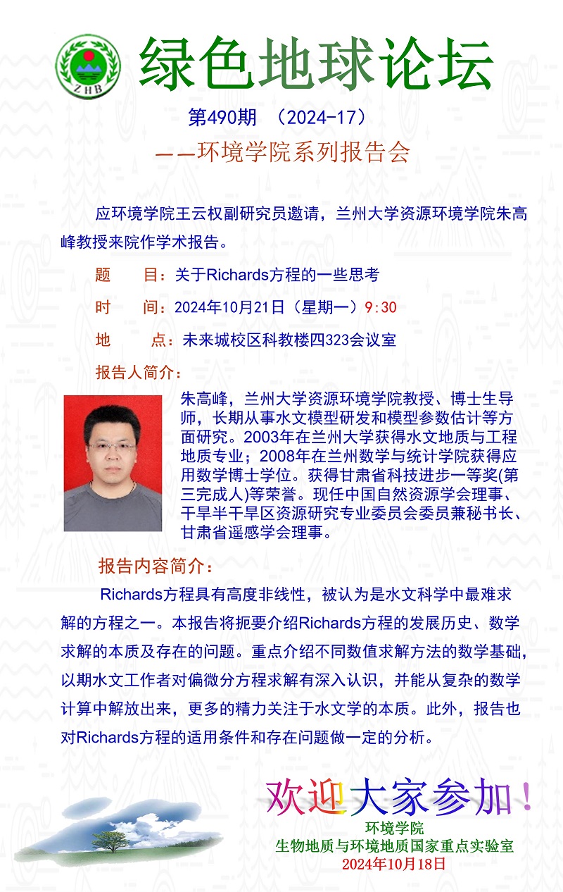 兰州大学资源WilliamHill中文官方朱高峰教授学术报告