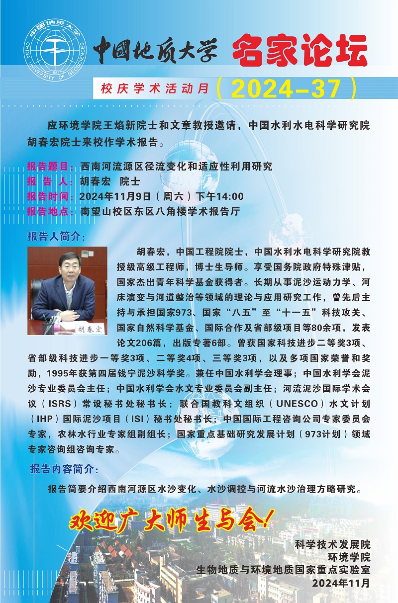 中国水利水电科学研究院胡春宏院士做客“名家论坛”
