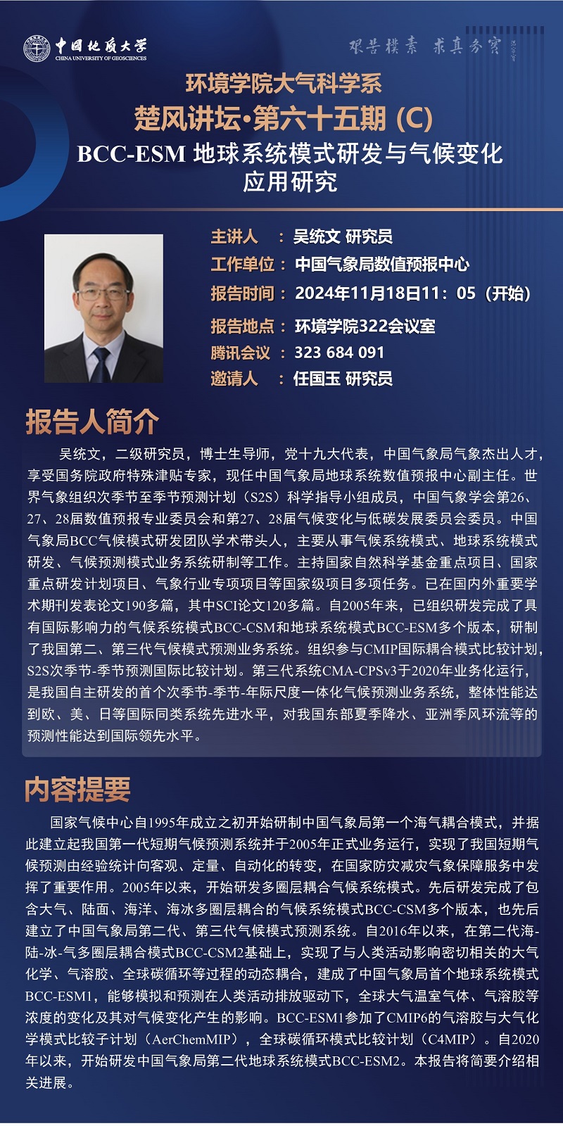 中国气象局数值预报中心吴统文研究员学术报告