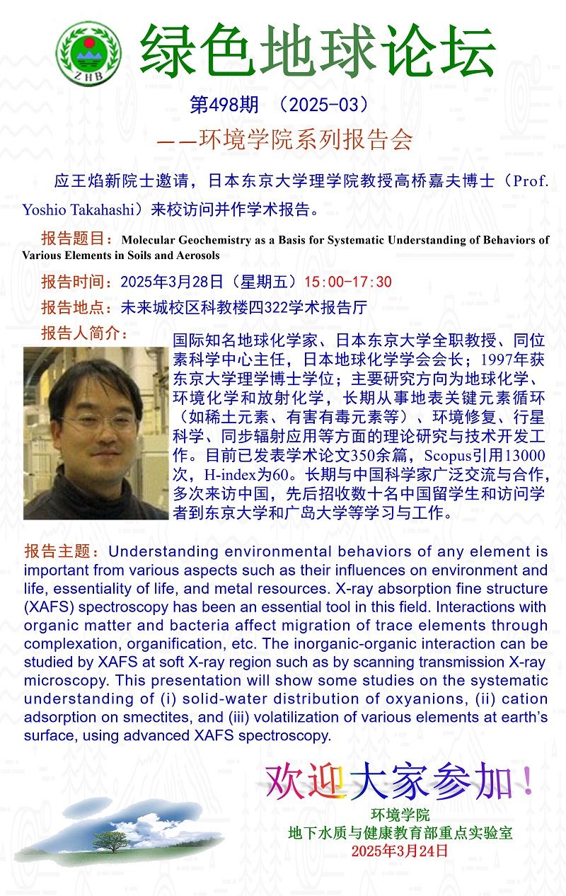 日本东京大学理学院教授高桥嘉夫博士(Prof. Yoshio Takahashi)学术报告