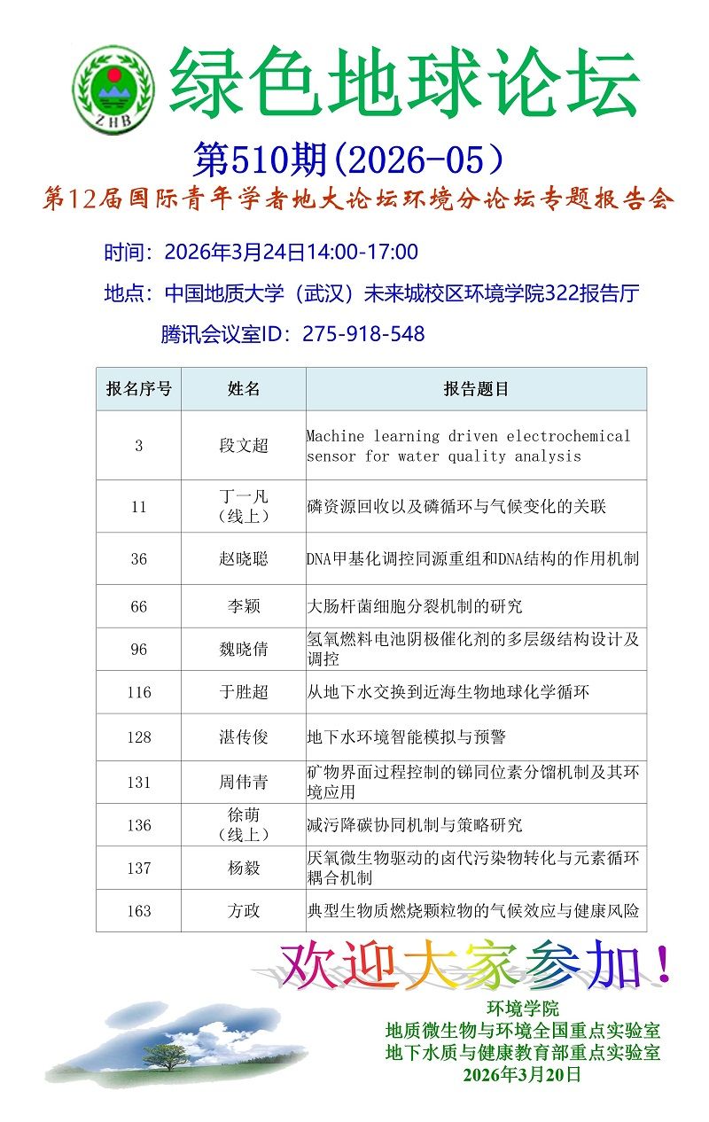 第12届国际青年学者地大论坛环境分论坛专题报告会