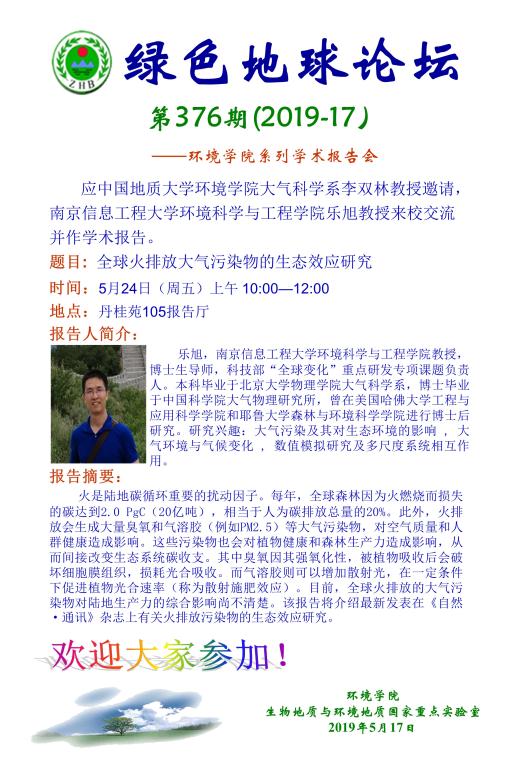 南京信息工程大学环境科学与工程学院乐旭教授学术报告