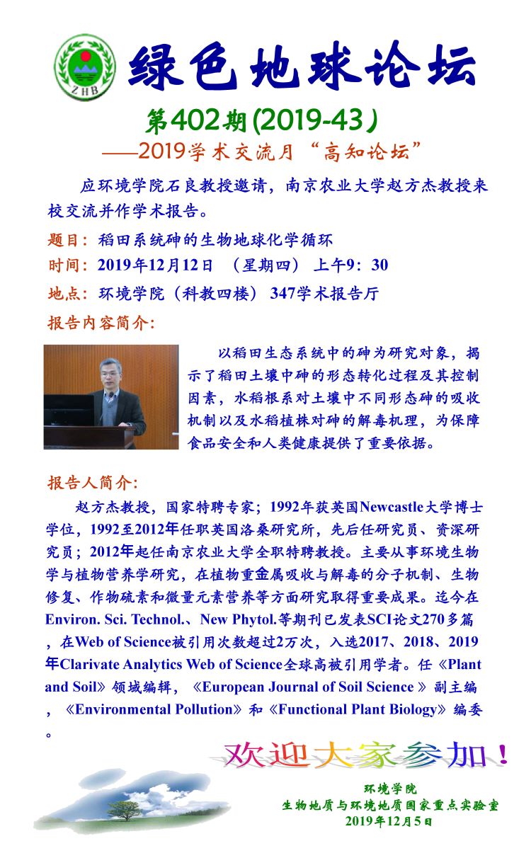 南京农业大学赵方杰教授学术报告
