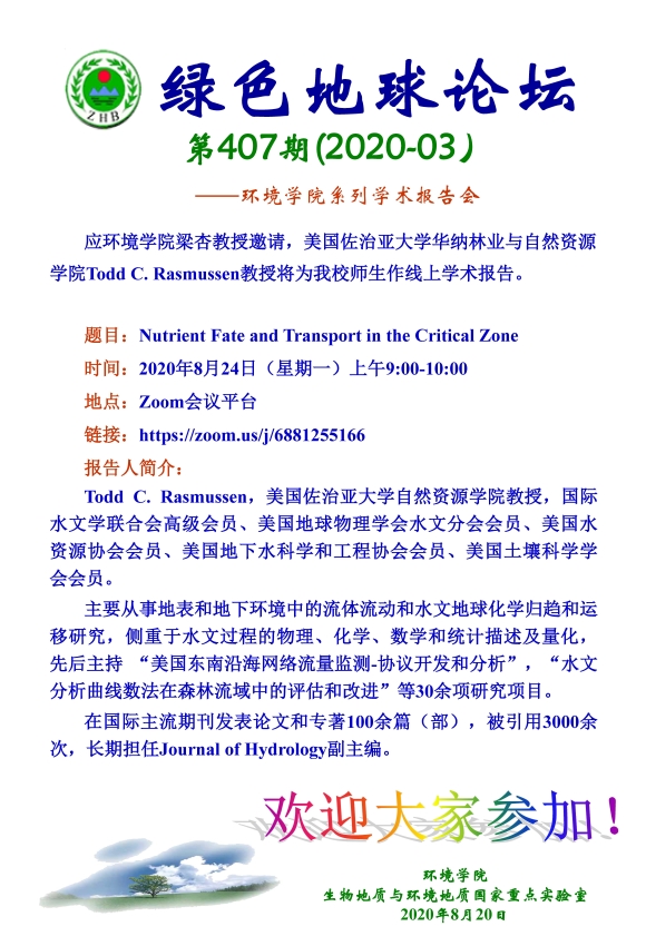 美国佐治亚大学华纳林业与自然资源学院Todd C. Rasmussen教授学术报告