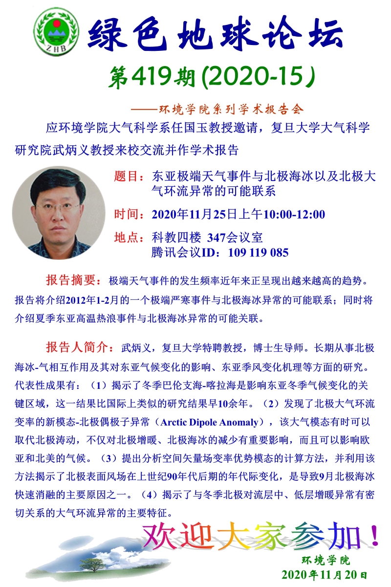 复旦大学大气科学研究院武炳义教授学术报告