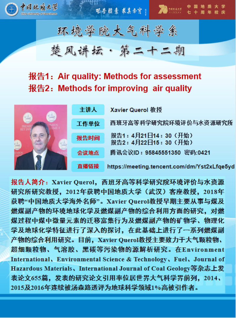 西班牙高等科学研究院环境评价与水资源研究所研究教授Xavier Querol学术报告