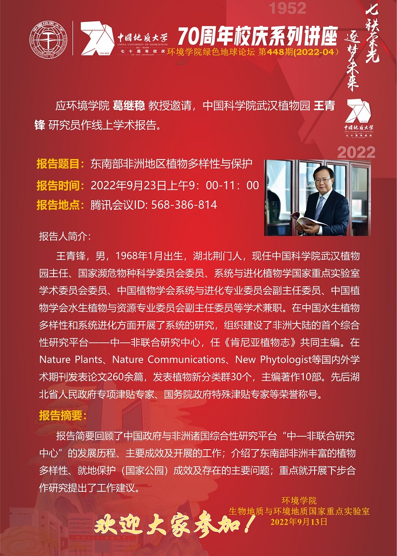 中国科学院武汉植物园王青锋研究员学术报告