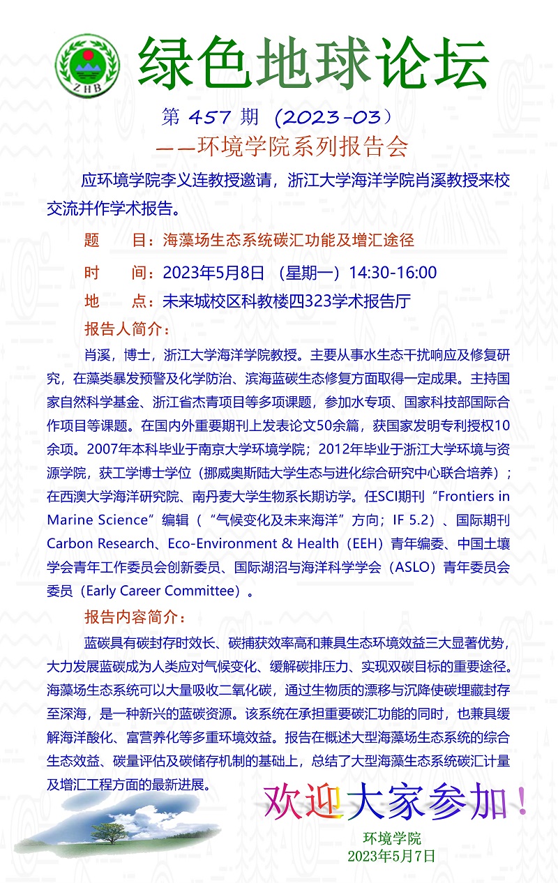 浙江大学海洋学院肖溪教授学术报告