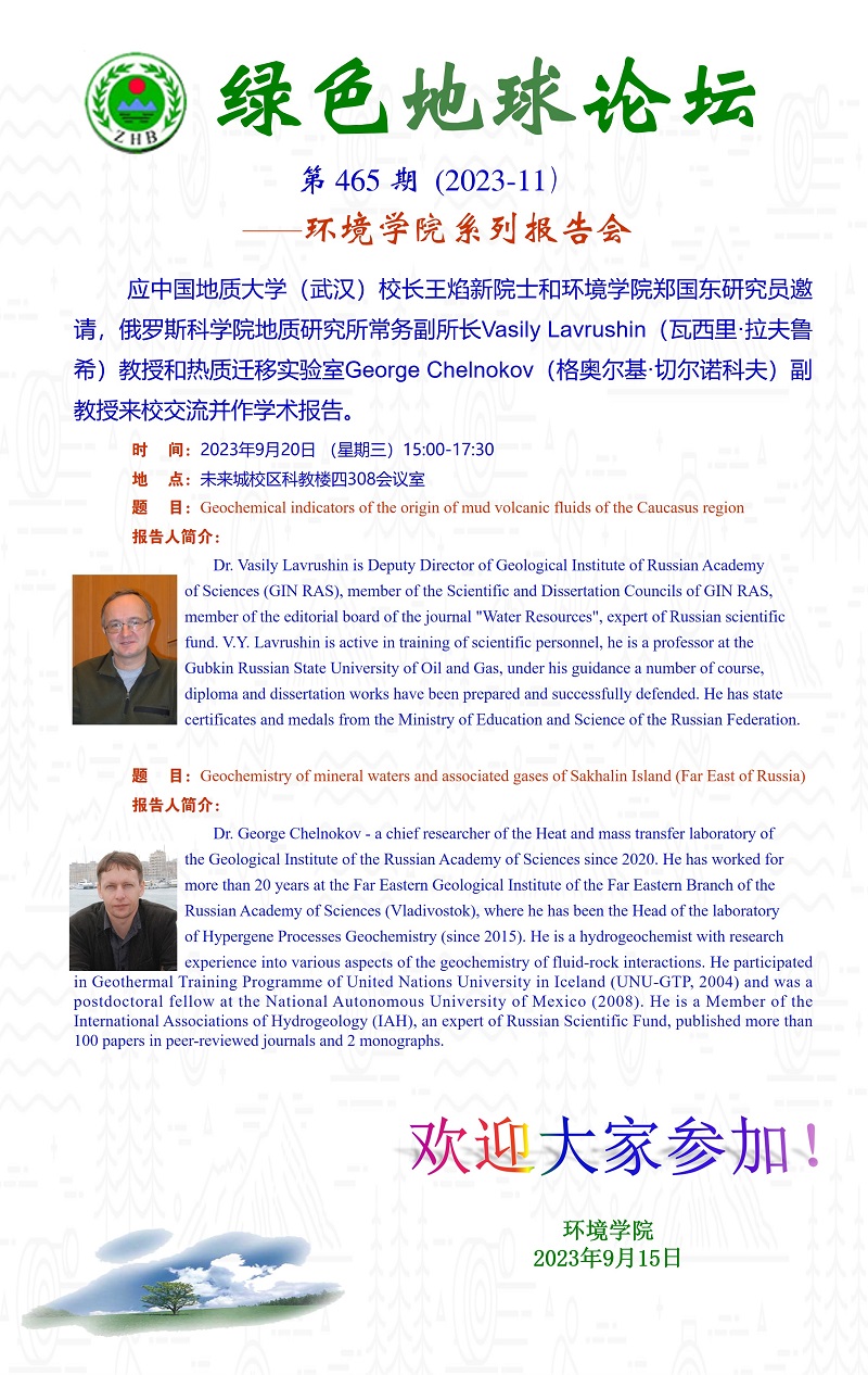俄罗斯科学院地质研究所Vasily Lavrushin教授和热质迁移实验室George Chelnokov副教授学术报告