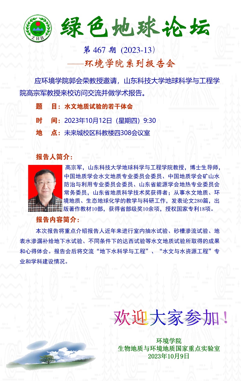 山东科技大学地球科学与工程学院高宗军教授学术报告